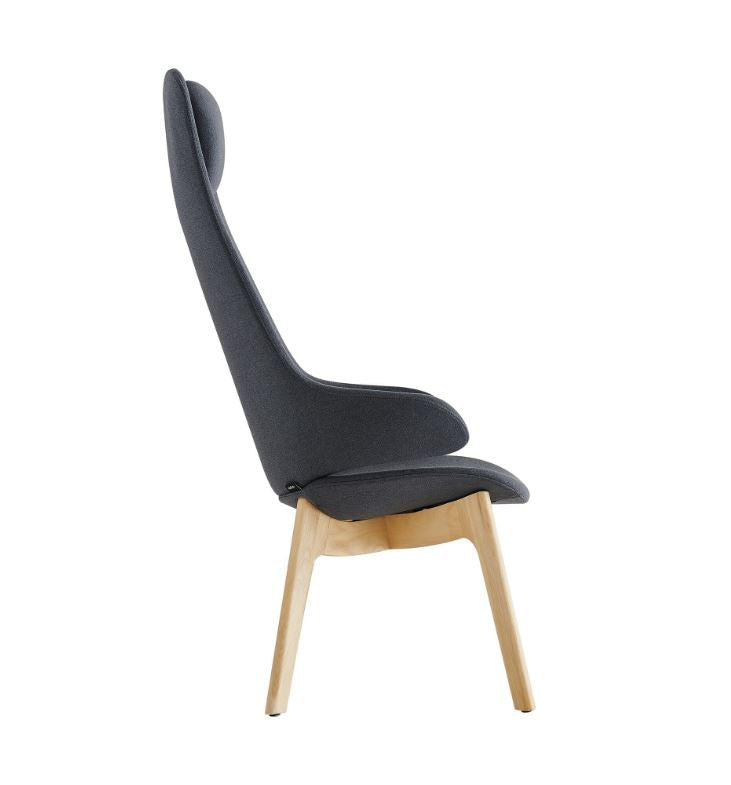 The Konfurb Orbit chair is designed by internationally acclaimed architect and designer, Mac Stopa. The chair is characterised by a sleek and minimalist design, with a dominant ‘wing’ style that seamlessly complements various spaces including; relaxation spaces, reception areas and comfortable and informal workplace meeting spaces. Harmonise the wooden 4 leg base with your choice of Charcoal fabric or Black PU upholstery. For a personalised touch, opt for custom upholstery to elevate your interiors.