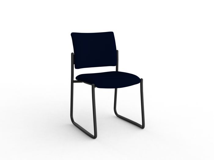 Features • Strong, fully-welded frame – Black or Silver powdercoat. • Frame available in two styles - stacker or skid. • Waterfall seat for increased circulation. • Contemporary, square styling. • Dynamic backrest shape for superb comfort. • Stacker frame - stacks 4 high (with and without arms), skid frame - stacks 4 high (no arms). • Upholstered in Crown, Breathe, Splice fabric or PU. • Option to upholster in custom/ supplied fabric. • Optional arms. • Optional links to connect chairs (Suitable for stacker frame only)