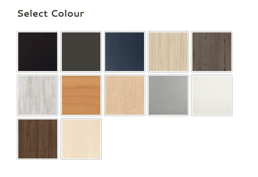 Available in Colours: Black, Carbon, Char-blue, Coastal-elm, Coronet-beech, NZ-tawa, Nordic-pine, Premium-birch, Silver-haze, Simply-white, Tasman-elm, Washed-maple.